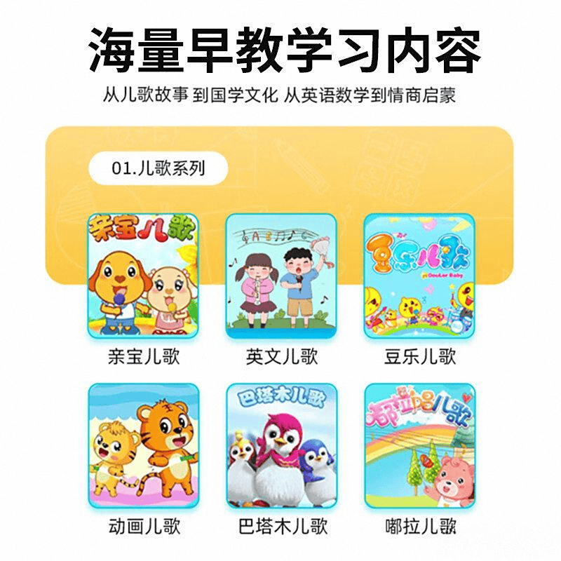 2️⃣丰富的故事库:拥有多个经典故事与儿歌,有助于孩子们在聆听中提升语言能力和创造力。充满想象力的内容可以吸引孩子的注意力,让他们快乐地学习。