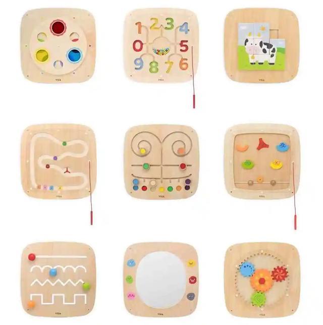 这是一套专为幼儿和学龄前儿童设计的教育墙面玩具,特别适合幼儿园和托育中心使用。产品采用高品质椴木胶合板,坚固耐用且表面光滑,适应各种早教环境。集合9大功能模块,通过明亮且高对比度的色彩,帮助儿童视觉和认知发展,促进感官体验、精细动作、逻辑思维及社交能力的全面提升。统一的模块化设计,既可灵活组合,也能单独使用,满足多样化的游戏与教学需求。